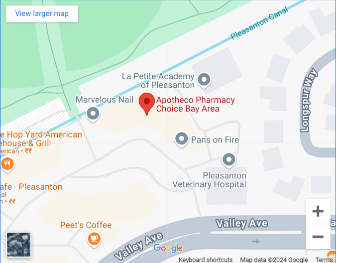 Clear Choice Pharmacy was acquired by Apotheco Pharmacy Group in 2022. Apotheco Pharmacy Choice Bay Area is a full-service pharmacy with a focus on skin conditions. We provide skin treatment for Atopic Dermatitis (Eczema), Acne, Actinic Keratosis, Wound Care, Fungal Infections, Psoriasis, and Rosacea. Our specialty pharmacy is located in the Tri-Valley Bay Area in the Hopyard Village Shopping Center, Pleasanton, CA. We have plenty of parking available right on-site. Stop by our store or choose to receive your medications through our complementary free delivery.