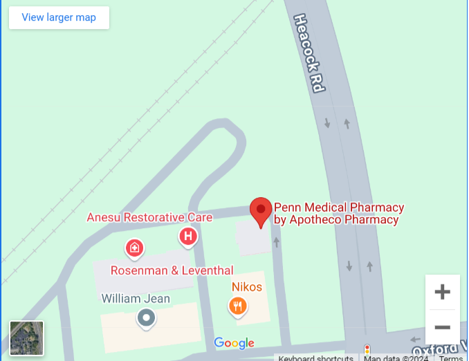 Previously a bank, Apotheco Pharmacy Yardley was rebuilt in 2017. We are located on Oxford Valley Road and we are equidistant from Yardley’s two main attractions, the famous Sesame Place and Shady Brook Farm. We are also close proximity to Core Creek Park and the 500-acre Washington Crossing Historic Park. There is plenty of free parking onsite.