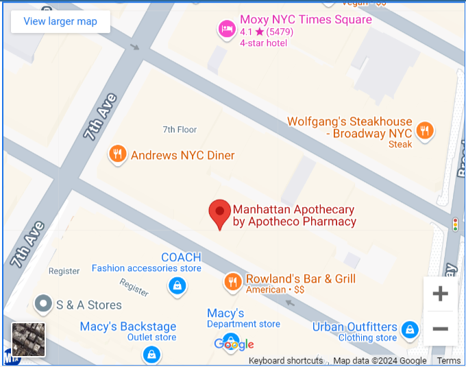 Manhattan Apothecary was built in 2017 and is located in the heart of Midtown Manhattan. Our office is only one block away from Penn Station and only seven blocks away from the infamous Times Square. Nestled in the Garment District, we are near many NYC landmarks including the Empire State Building, plus an array of restaurants and shopping options. Though we offer white glove delivery service, feel free to stop by our store front and check out the digs!