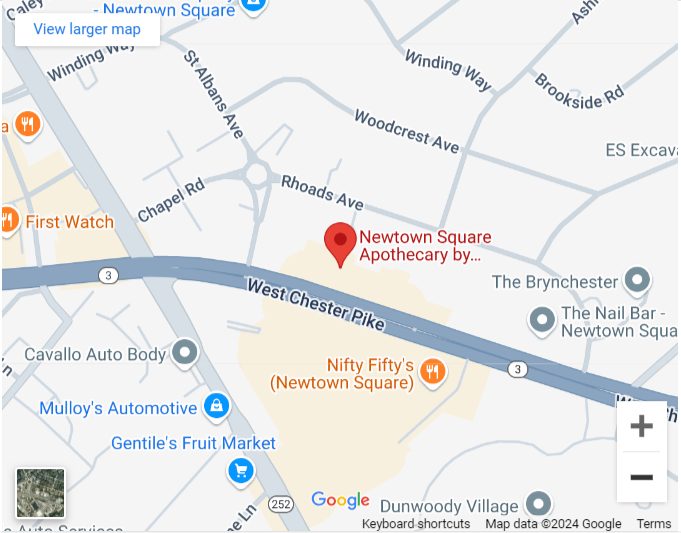 Apotheco Pharmacy Group is an innovative access platform that offers specialized dermatology care. We provide specialized treatment for Eczema, Acne, Actinic Keratosis, Fungal Infections, Psoriasis, Wound Care, and Rosacea. Apotheco Pharmacy Newtown Square was built brand new in 2017 and is located right across the street from the Newtown Square Shopping Center and off of PA-3. Newtown Square in Westchester Pike, PA is less than an hour away from Philadelphia and is full of bustling businesses, shops, and places to eat with plenty of parking available. Our skin care pharmacy is also a short drive away from a local landmark, Rose Tree Park. We deliver dermatology prescriptions free of charge.