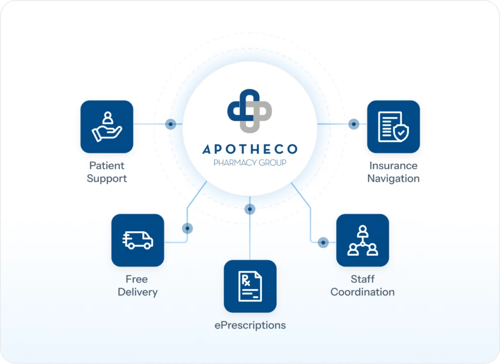 Apotheco supports insurance navigation, patient support, and follow-ups so your staff can focus on care instead of callbacks.